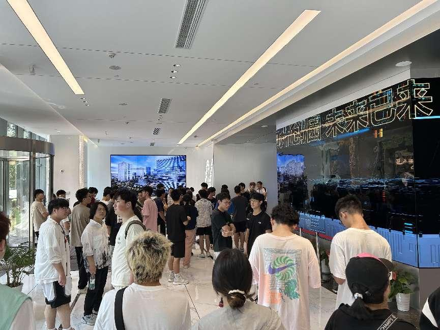 园区内现代建筑群错落有致,每一砖一瓦都蕴含着创新和科技的基因。米兰(中国)AC米兰科技IT菁英暑期实训营的学员们怀揣着对科技的无限憧憬步入研创园展厅。展厅内部设计充满科技感,一块块巨大的模型和显示屏映入眼帘,生动展现了研创园的科技规划,以及从梦想走向现实的开展历程。
